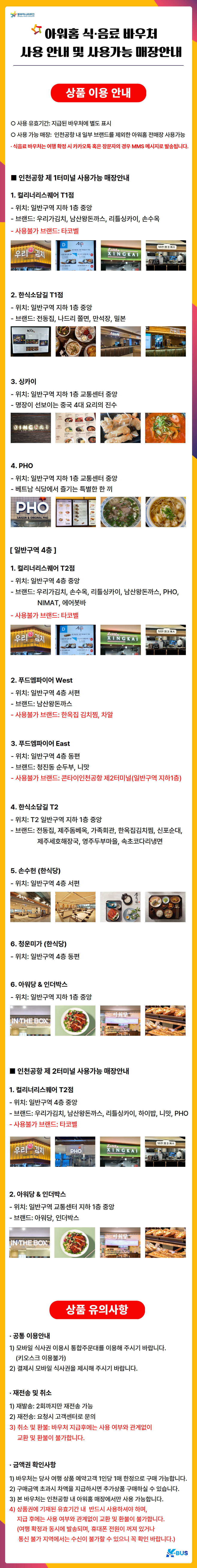 K-BUS(동부하나리무진) 고객 전용 특가로 영종도 여행을 더욱 알차게 즐기실 수 있도록 인천공항 아워홈 식음료 바우처 할인 혜택을 준비하였으니 많은 이용 바랍니다.