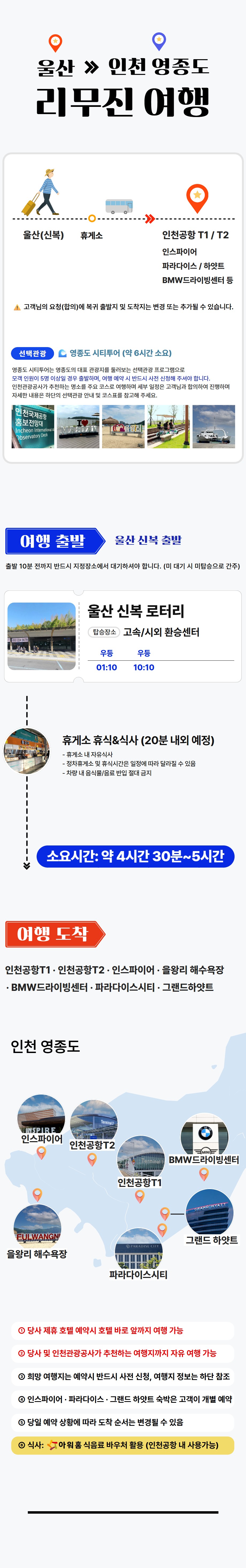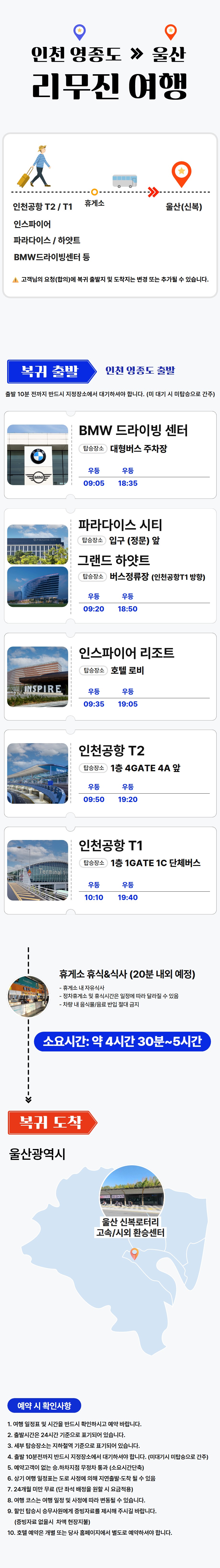 ※ 탑승시간 및 복귀시간을 철저히 준수 부탁드리며 시간 미준수로 인한 미탑승은 환불이 불가합니다.