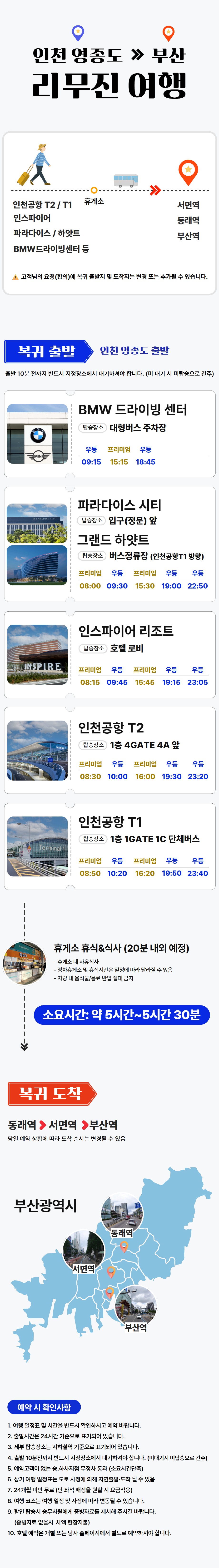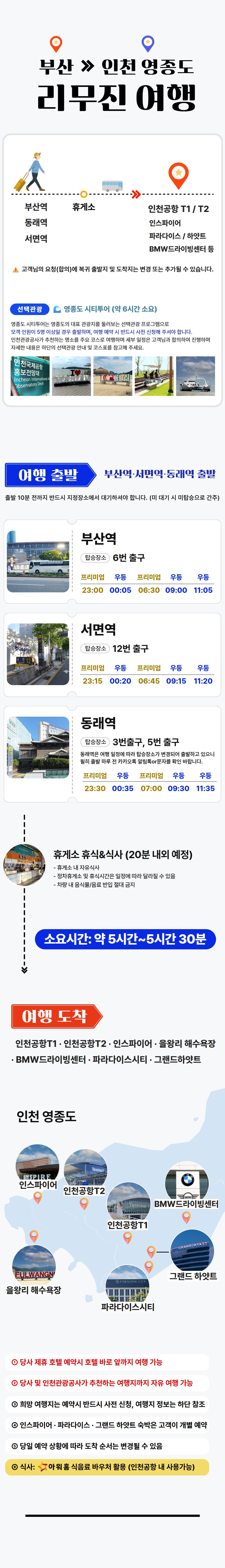 ※ 탑승시간 및 복귀시간을 철저히 준수 부탁드리며 시간 미준수로 인한 미탑승은 환불이 불가합니다.