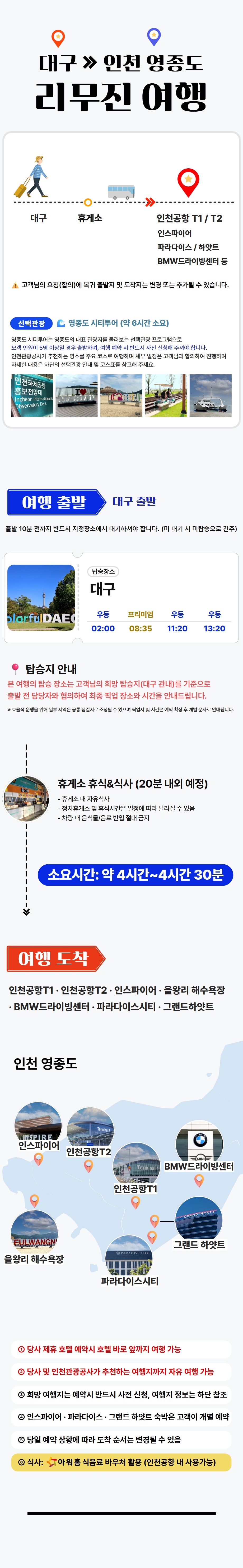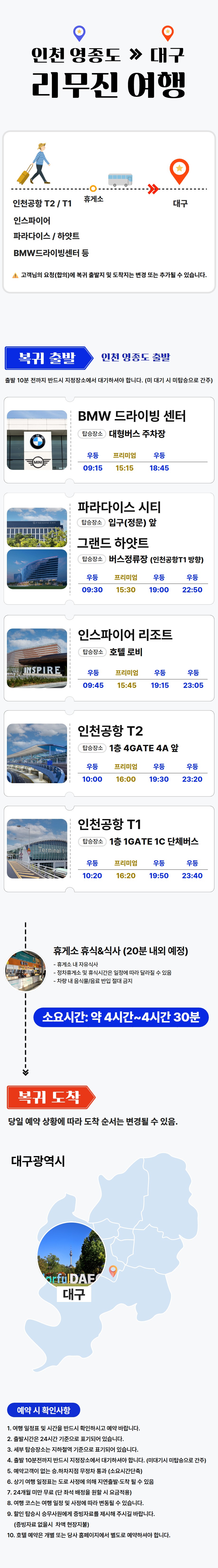 ※ 탑승시간 및 복귀시간을 철저히 준수 부탁드리며 시간 미준수로 인한 미탑승은 환불이 불가합니다.