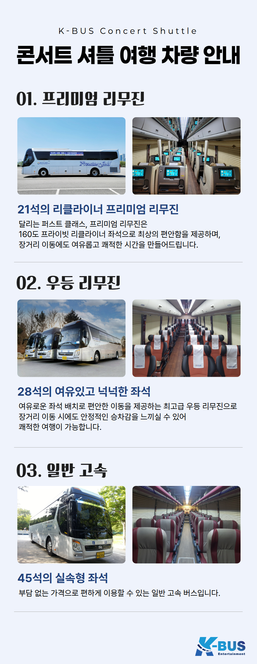 21석 프리미엄리무진 / 28석 우등리무진 / 45석 일반고속
