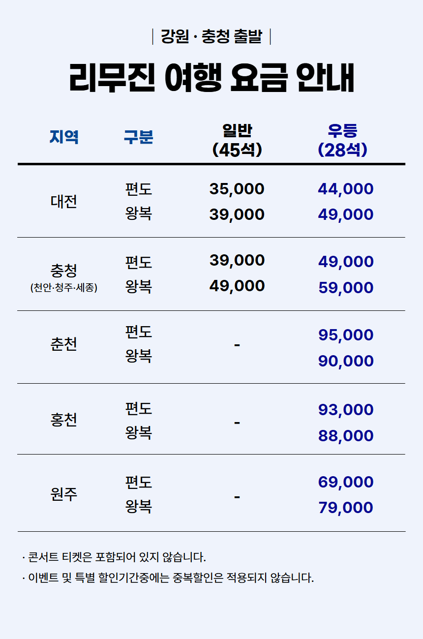 ·포함내역 버스 여행권, 프리미엄 서비스, 생수 (1병), 차량 보험, 여행업 보증보험