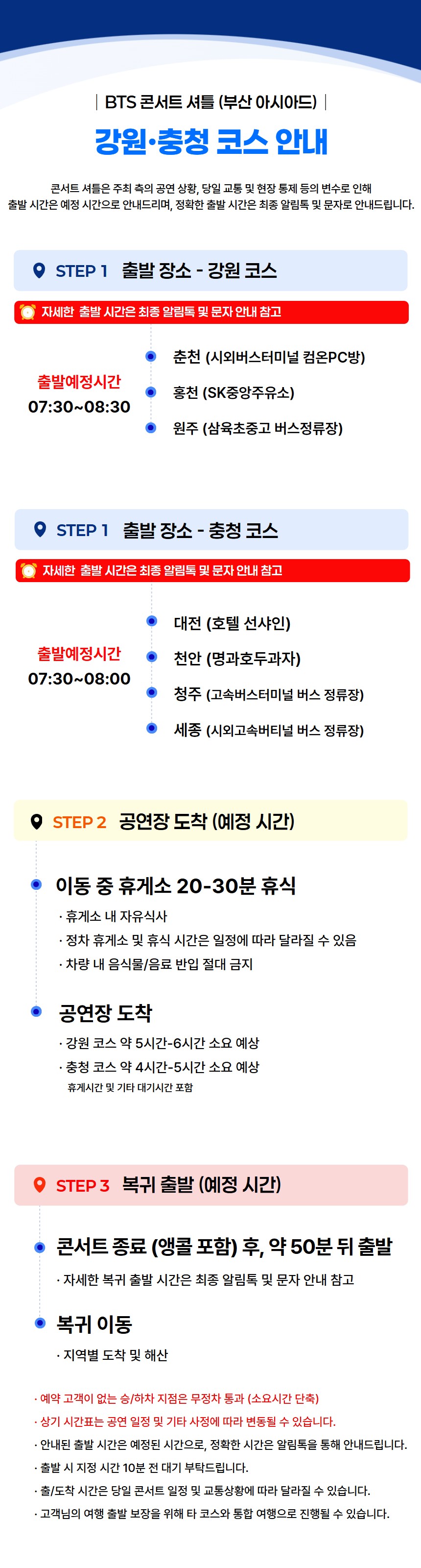 BTS 콘서트 셔틀[강원·충청 ↔ 부산 아시아드 주경기장]