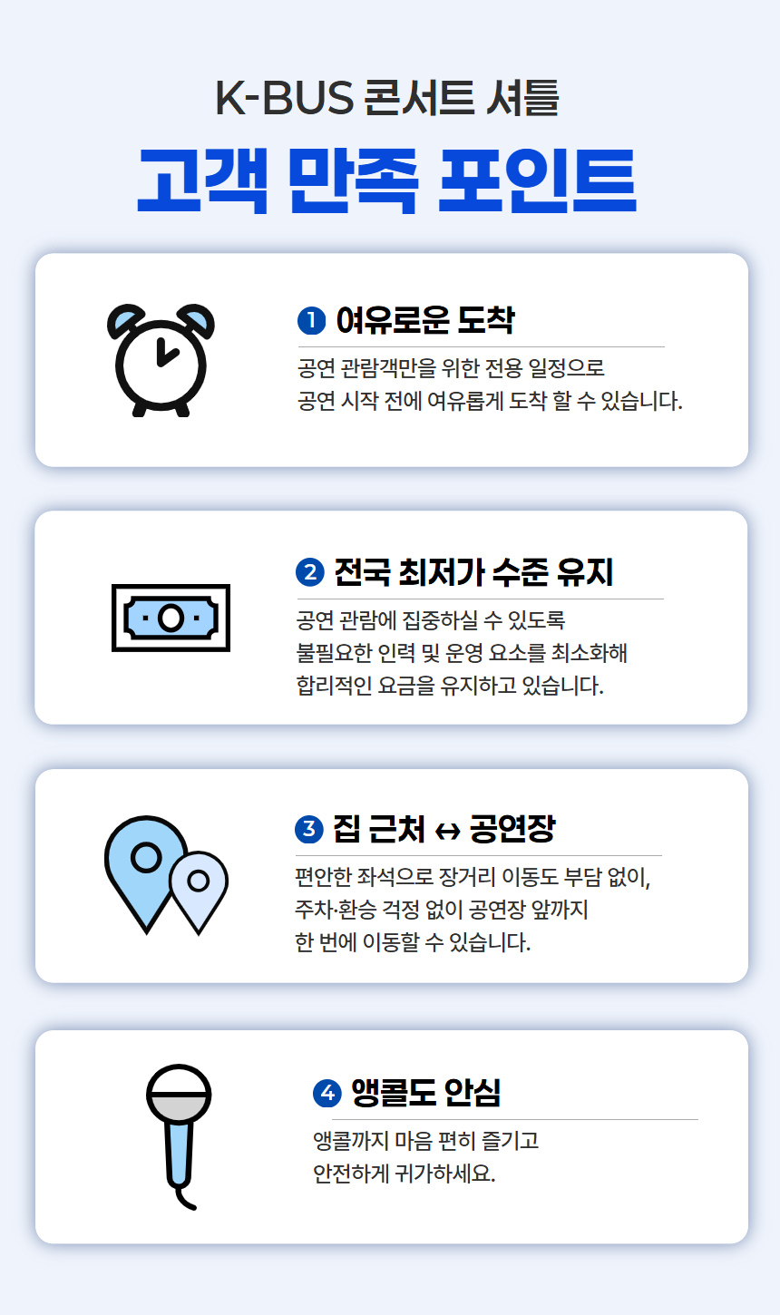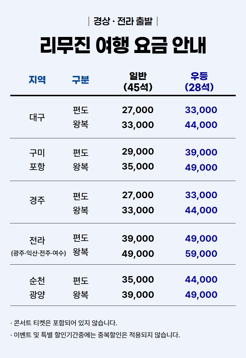 | ·불포함내역 | 콘서트 입장권, 개인 여행자 보험, 개인 비용 일체, 개별 식사, 개별 숙박, 가이드 미탑승 |